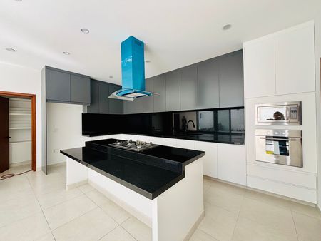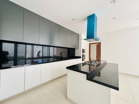 • Cocina completamente equipada con torre de hornos e isla muy amplia con cubierta de granito negro