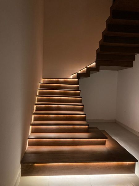 • Escalera forrada en madera con iluminación en cada escalón
