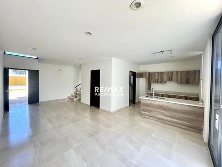 La casa cuenta con espacios amplios y funcionales, ideales para disfrutar en familia o recibir invitados. En planta baja, te recibe un cubo de doble altura que aporta una gran sensación de amplitud y luz natural. La cocina es moderna, equipada con barra de granito, ideal para quienes disfrutan cocinar con estilo. Además, cuenta con un amplio patio, medio baño de visitas y una cochera de gran tamaño con espacio suficiente para varios vehículos.