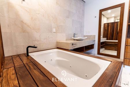 - Recámara principal con walk in clóset, A/A fan and Coil, balcón, baño con tina, acabado de mármol en meseta y pared.