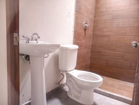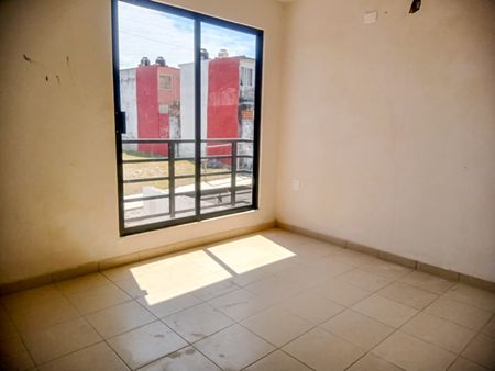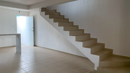 Cuenta con 3 recámaras, 1 baño completo, sala comedor, cocina con barra y tarja, medio baño de visitas, patio con área de lavado y espacio para auto