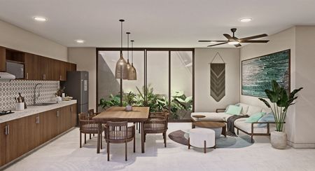 • Cocina con desayunador y estancia con concepto de espacio abierto