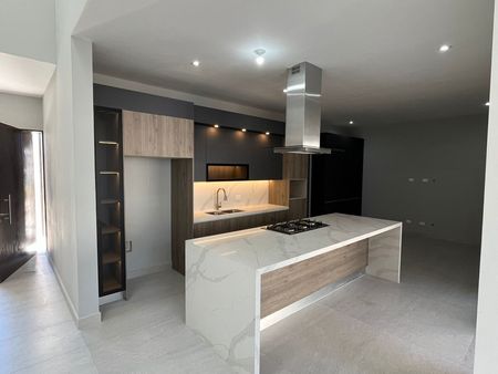 PB: Cochera doble, sala-comedor con doble altura, baño de visitas, cocina integral equipada, alacena y family room con vista al patio, jardín de 105m2 con area de asador de 30m2 techados, cuarto de servicio completo y lavandería.