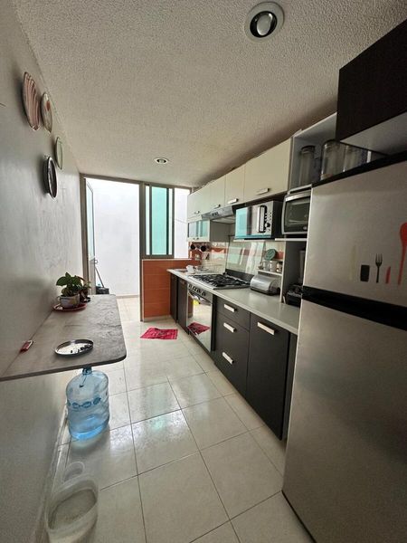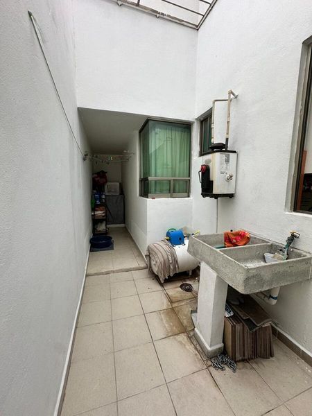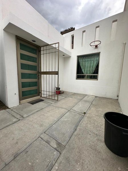 Patio trasero, espacio para sala-comedor y cocina equipada.
