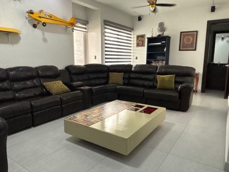 Amplia área social versátil, perfecta para salón de juegos, gimnasio, sala de cine o incluso una tercera recámara. Cuenta además con bodega interior y exterior, y cochera para cuatro autos. Equipamiento y detalles