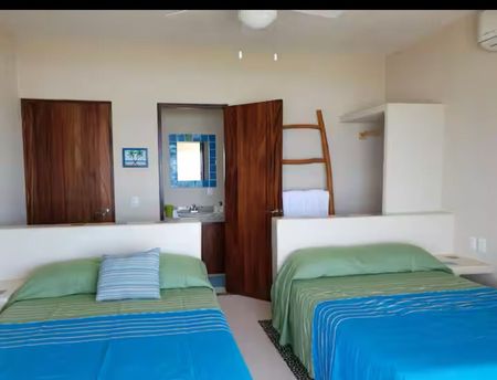 3 recámaras con baño propio, ventiladores Hunter Douglas y aire acondicionado