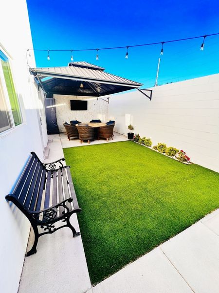 Césped en frente y patio