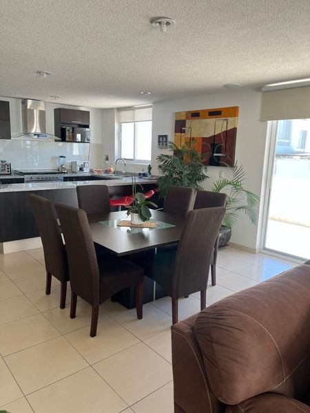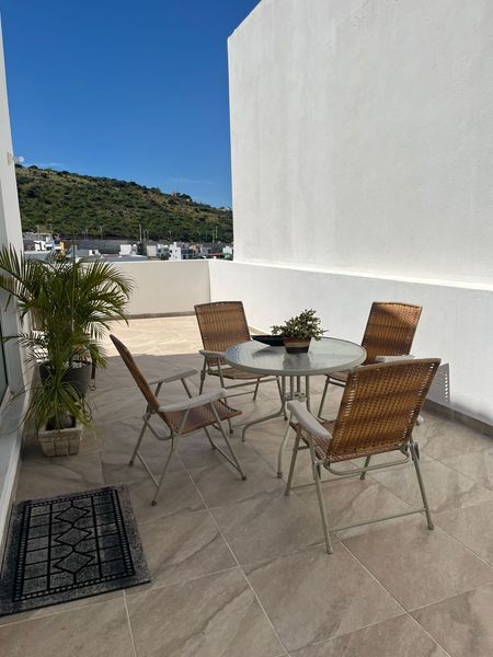 Disfruta de espacios sociales bien distribuidos, con una sala y comedor acogedores y una cocina equipada con una amplia alacena. La terraza en escuadra es el rincón especial de la casa, ofreciendo una vista espectacular, perfecta para tus momentos de descanso y reuniones al aire libre.