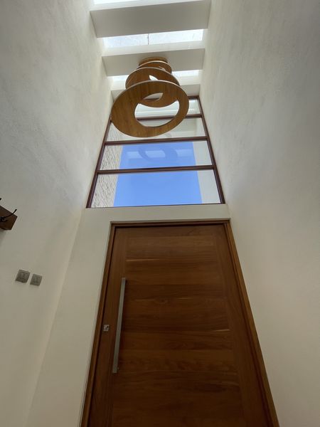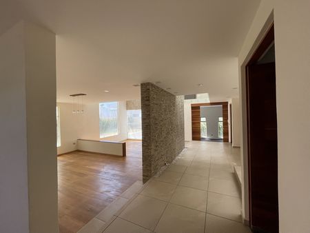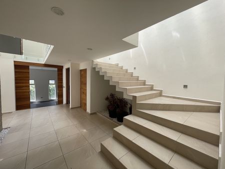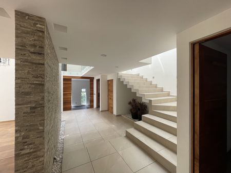 Casa dentro de fraccionamiento con vigilancia 24 hrs, cerca de las principales arterias viales que conectan a la ciudad, amplio recibidor, cocina integral con isla y barra de granito, lavabajillas, amplia alacena, medio baño, sala y comedor con triple altura, y pisos de madera, medio baño, área de bar y cuarto de juegos, dos jardines uno oriental y otro muy amplio de 250 m2 con jacuzzi y área de asador, cuarto de juegos con medio baño, segundo nivel, estudio, 5 reçámaras , 4 baños completos, la recámara principal con amplio vestidor, área de tareas, hall de tv, tercer nivel: área de lavado, cuarto de servicio con baño completo, roof ,área para paneles solares, la casa cuenta con acabados residenciales, amplia cochera techada para 3 autos con closet para herramienta. bodega
