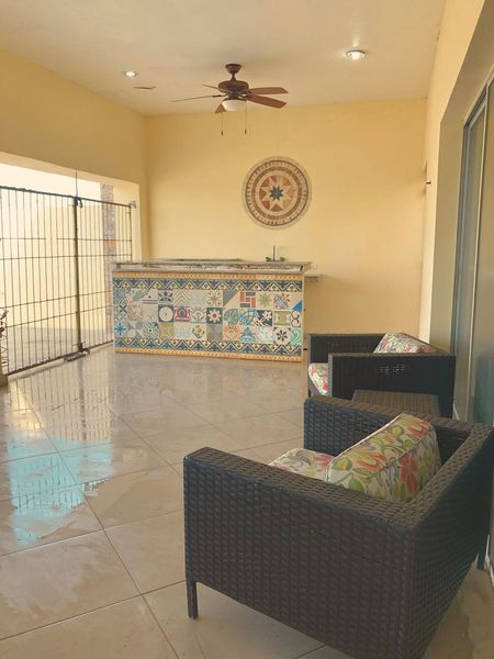 - Terraza techada con área de descanso.