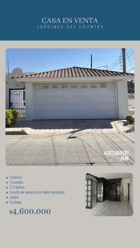 Casa en Venta Jardines del CountryEsquina3 cuartos2.5 bañosCuarto de servicio con baño completo JardinCochera$4,600,000