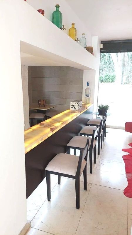 SALA DE TV CON CANTINA CON BARRA DE QUARZO Y CAVA TAMBIEN CON VISTA A JARDIN