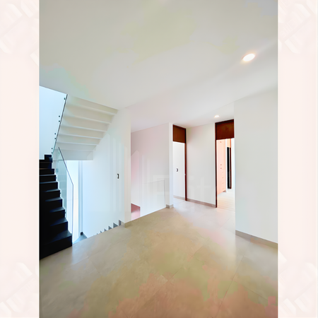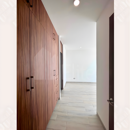 . Al ingresar, destaca un cubo de doble altura con elegantes acabados de madera que aportan calidez y estilo, además de un medio baño para visitas.