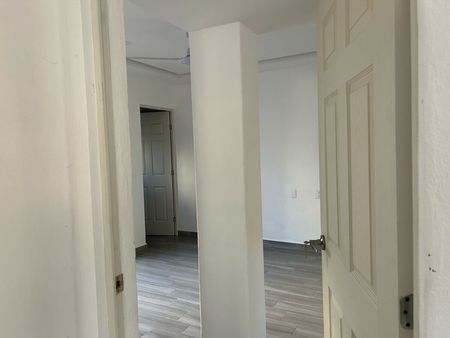 Departamento secundario: cocina integral, sala, comedor, dos recámaras con closet, dos baños completos y lavandería.