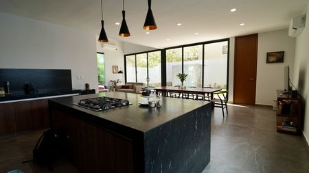 Cocina equipada con isla y meseta de granito, concepto abierto
