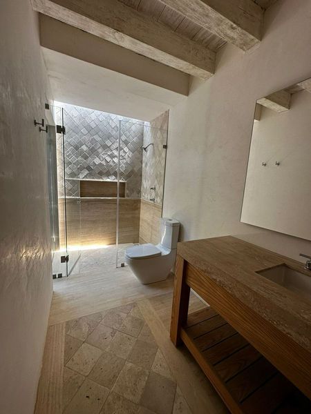 En áreas comunes hay una alberca natural, canchas de pickleball, área de juegos infantiles, área de asador con BBQ y horno para pan.