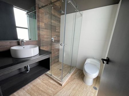 Recámara o estudio con baño completo, ideal para huéspedes o área de trabajo.