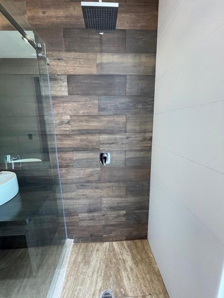 - Canceles de baño con cristal templado y herrajes de acero inoxidable.