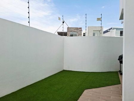 - Jardín con pasto artificial.