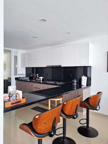 - Barra de cocina con cubierta de granito color negro