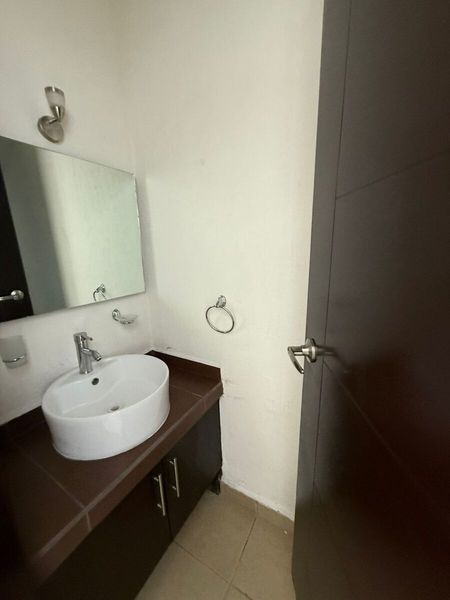 Medio baño para visitas, con acabados modernos.