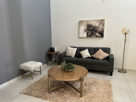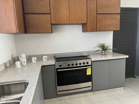 -Cocina integral con cubierta de granito, acabada con pintura acrílica color café y gris con tarja y llave mezcladora de acero inoxidable incluida.