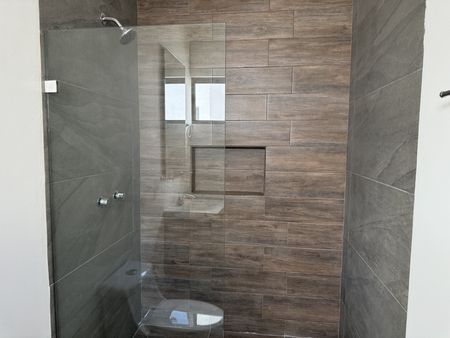-En baño: regadera y manerales cromados, juego de accesorios empotrados, coladera en ducha con cespol de PVC.