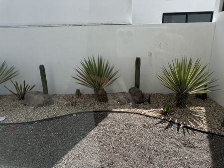 -Banqueta de concreto en acceso principal y huellas para automóvil.