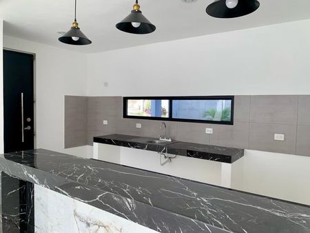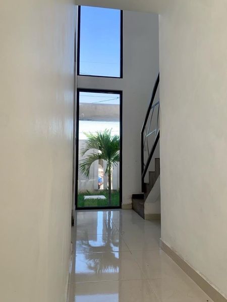Casa moderna con acabados residenciales en formato abierto consta de dos niveles , en la planta baja se encuentra la sala comedor cocina , medio baño , jardín y garaje en la planta alta tres habitaciones y tres baños