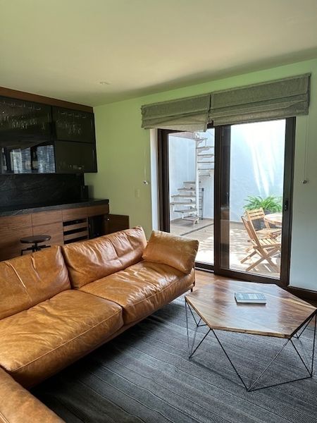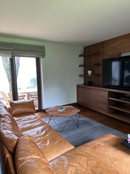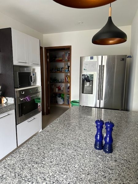 Bar con sala tv y cantina con salida a segunda terraza y jardín, la cocina es equipada y tiene una alacena muy amplia, el área de lavandería y cuarto de servicio con baño.