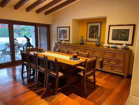 Disfruta de la amplitud de su extenso jardín, ideal para el esparcimiento familiar o el entretenimiento al aire libre. La alberca es el corazón de las áreas exteriores, perfecta para relajarse bajo el sol.