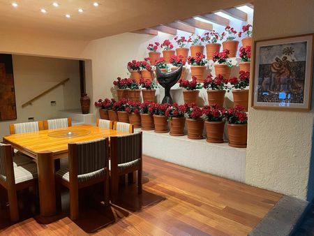 Asentada sobre un impresionante terreno de 1,185 m², con una construcción de 628 m², la propiedad ofrece una distribución excepcional que fluye sin esfuerzo, conectando cada espacio con el exuberante exterior. Los finos detalles en madera presentes en toda la casa aportan una calidez y sofisticación inigualables, creando ambientes acogedores y elegantes.