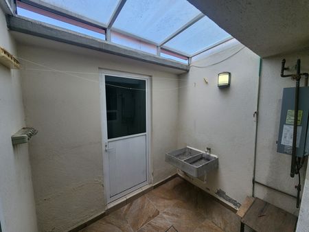 Tiene un cuarto de servicio con baño completo y área de lavado.