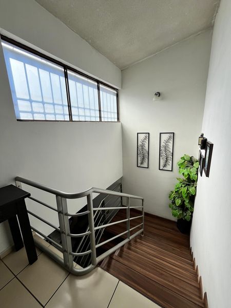 Planta alta: Dos recámaras con clóset, un baño completo, clóset de blancos.