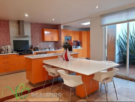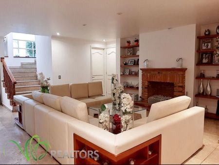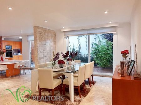 Amplia y luminosa casa a unos pasos del centro comercial Paseo Interlomas, dentro de privada con doble filtro de seguridad. 3 amplias recámaras con baño y vestidor, sala de tv. con pequeña área de trabajo, sala con chimenea, comedor, amplia cocina abierta equipada, antecomedor, terraza, área de lavado, medio baño de visitas, cuarto de servicio con baño completo, 2 closet de blancos, bodega, cisterna, 3 estacionamientos. La casa tiene una excelente distribución lo cual permite el máximo aprovechamiento de los espacios. Jardín común con juegos infantiles y estacionamiento de visitas.