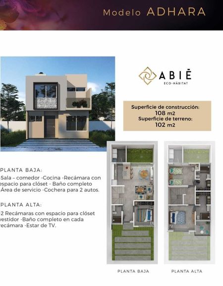 - **Espacios amplios**: 102 m² de terreno y 108 m² de construcción.