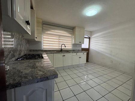 PLANTA BAJA: SALA CON DOBLE ALTURA, COMEDOR, COCINA CON BARRA DE GRANITO Y PARRILLA, AREA DE LAVADO TECHADA Y CUARTO DE SERVICIO CON BAÑO COMPLETO, PATIO TRASERO DE BUEN TAMAÑO, COCHERA PARA 2 AUTOS Y INGRESO MUY AMPLIO PRINCIPAL Y TAMBIEN ACESO DE SERVICIO EN COCINA,