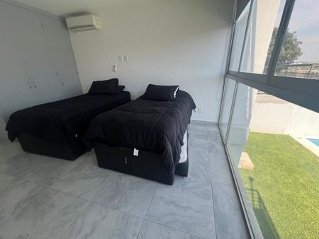La casa se vende amueblada y equipada, lista para habitar, en perfectas condiciones, tiene espacios muy amplios, perfectamente distribuidos, en la entrada podemos encontrar el estacionamiento para tres autos, entrada independiente de servicio para la alberca, jardín y muebles de jardín, un bar/cantina, sala con su pantalla, aire acondicionado y lámparas, en desnivel encontramos el comedor con aire acondicionado y lámpara, bodega, medio baño, área de lavado, cocina equipada, refrigerador, antecomedor, lámparas, espacio para despensas, espacio para blancos, en la planta alta encontramos 3 recámaras cada una con baño completo y aires acondicionados, la principal con cama king size y jacuzzi, el roof garden con pasto sintético y con vista al lago, medio baño, gas estacionario, sombrilla para exteriores.