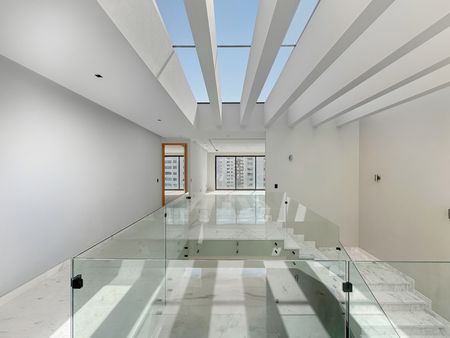 Impresionante residencia para estrenar en ubicación PRIME en Bosques de las Lomas a pasos de Arcos Bosques. Entrando encontramos un espacio que puede ser estudio o despacho. Siguiendo por el pasillo llegamos a la sala comedor que son inmensos con salida al jardín y terraza. A un costado se encuentra un área de family con desayunador también con acceso al jardín y a la cocina. La cocina esta a todo lujo y espectacular con mucho espacio de guardado y alacenas. Por toda la casa hay espacios de guardado. El jardín esta divino y tiene unas vistas increíbles. Subiendo al segundo nivel nos encontramos con un family de muy buen tamaño, recamara principal con balcón, baño y vestidor. Del lado opuesto, esta una recamara mas también con balcón, baño y vestidor. Las otras 2 recamaras están en el lado opuesto de la casa y son gemelas, ambas con baño y vestidor. Bajando de nuevo tenemos un sótano con áreas de guardado, cuartos de servicio (2) y un salón de fiestas increíble. La casa tiene acabados lujo enserio con pisos de mármol en todas las zona sociales de la casa así como en baños. (Recamaras se entregan sin piso) Las carpinterías están de lujo y cuentan también con iluminación led. Si quieres estrenar en Bosques de las Lomas, esta es una gran opción.