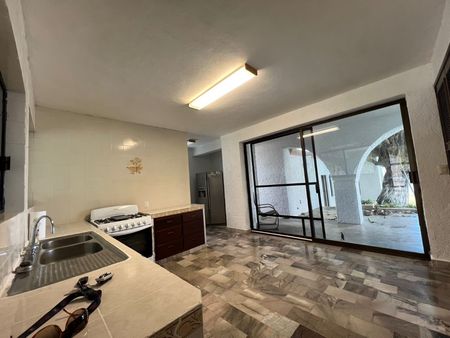 La casa se renta sin amueblar y consta en planta baja de áreas de sala, comedor y cocina, terraza, alberca y baño para visitas.
