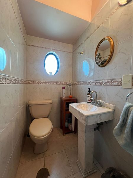 En el primer piso, encontrarás 3 recámaras grandes equipadas con vestidores, además de 2 baños completos y un cuarto de TV o estudio. La casa destaca por su iluminación natural y buena ventilación. También cuenta con cisterna y vigilancia 24/7. La propiedad ofrece servicios de luz, agua y gas de manera independiente.