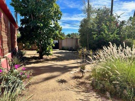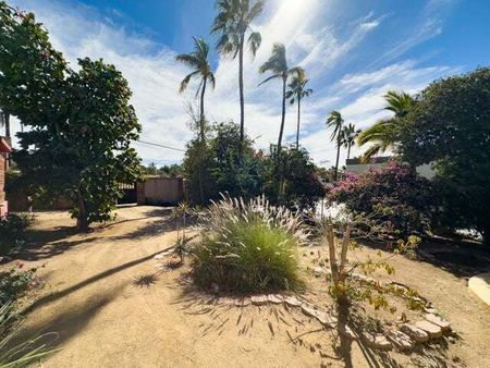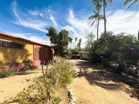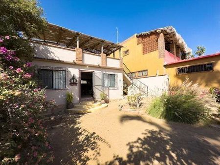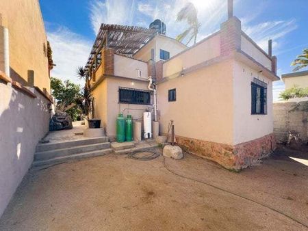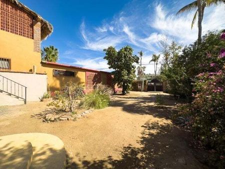 Esta encantadora casa de 3 habitaciones y 3 baños en el corazón de Todos Santos ofrece 2 habitaciones y 2 baños, además de una habitación adicional que puede usarse como sala de estar, oficina o para crear una amplia suite principal en la planta baja. También cuenta con una habitación y baño en el segundo nivel con entrada independiente. Es una excelente opción como hogar familiar o como alquiler vacacional. Tiene dos balcones superiores con vistas, un jardín maduro, y está completamente bardeada y con portón. La ubicación es inmejorable, justo a un lado de la carretera principal y a poca distancia de tiendas, restaurantes y entretenimiento. Ubicada en un vecindario establecido.