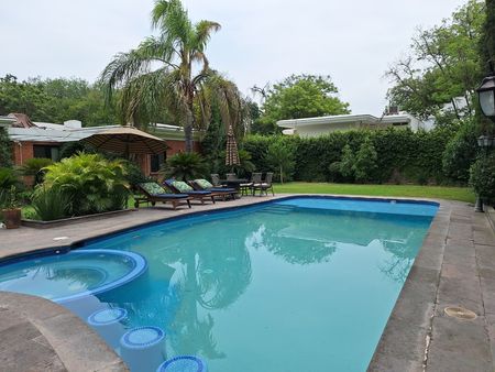 Espaciosa casa de una sola planta, ubicada en el corazón de la Colonia del Valle. Remodelada y reacondicionada. Consta de cuatro recámaras, cada una con baño y walk in closet. Sala, comedor, estudio u oficina, recibidor, estancia, cocina, lavandería, cuarto de servicio con baño, cochera para tres autos, pasillo lateral. Acabados de excelente calidad en toda la casa, piedra natural, duela de madera. Amplio jardín con terraza y alberca. Equipada con aire acondicionado y sistema de seguridad con cámaras.
