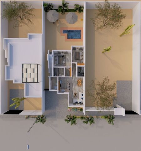 Descubre el modelo mejorado Lujo en Villas de Oasis, una villa de 2 recámaras y 2 baños en El Centenario con vistas a las montañas y al mar. Esta casa de una sola planta ofrece una sala más amplia, cuarto de lavado cerrado, alberca privada y terraza en la azotea con pérgola, ideal para disfrutar los atardeceres de Baja. En el interior, la cocina en "L" maximiza la funcionalidad, mientras que el área de sala expandida crea un espacio luminoso y acogedor para convivir o relajarse. La recámara principal cuenta con vestidor y baño privado con regadera de fácil acceso, mientras que la segunda recámara es perfecta para huéspedes o una oficina en casa. Con acabados de calidad y diseño pensado al detalle, esta villa combina estilo, comodidad y conveniencia, a solo minutos del centro de La Paz y del Mar de Cortés.