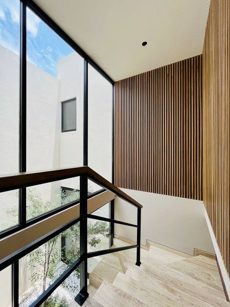 Casa MADRID cuenta con 2 lugares de estacionamiento Techados con pergola en acabado con madera.