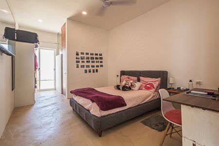 Diseñada en forma “L” que separa el área social común de los dormitorios. Casa Mary cuenta con un plan de piso abierto con techos altos que abarcan el comedor, sala de estar y cocina. Un pasillo que conduce a 2 dormitorios secundarios con baños completos y closets. Pasando los dormitorios secundarios es el amplio dormitorio principal con baño completo y vestidor, con acceso a la zona al aire libre / piscina.