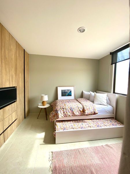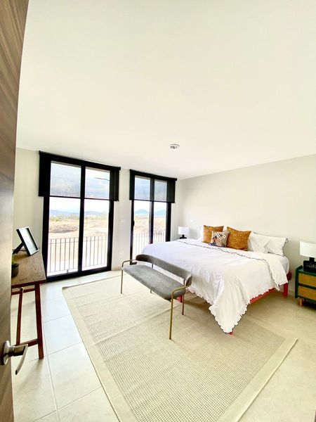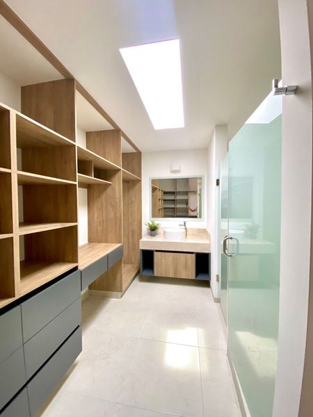Recámara principal con vestidor, balcón y baño completo, dos recamaras secundarias, un baño completo.