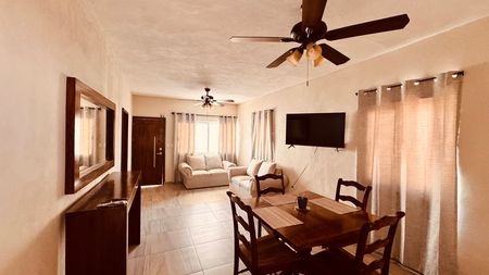 A solo 5 minutos del malecón de La Paz, Casa Nayarit cuenta con 2 recamaras, 2 baños, cocina con parrilla y refrigerador, A/A en cada una de las recamaras, cisterna con bomba presurizadora, porton eléctrico, entre otras amenidades.