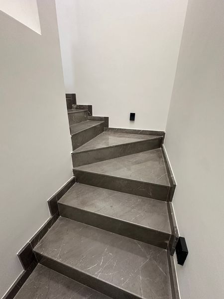 - Mármol en lavabos y escalera