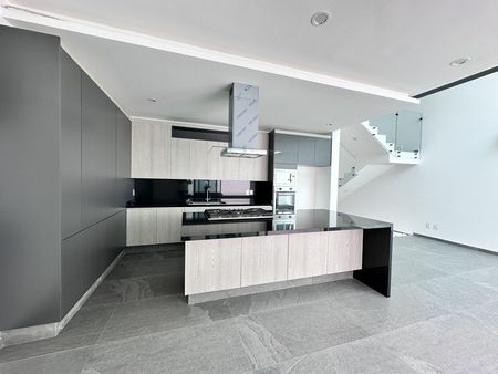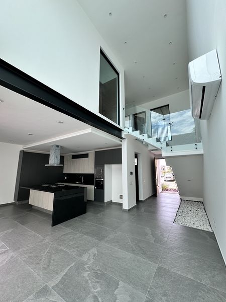 Cuenta con una doble altura y una cocina equipada con acabados de lujo hermosos ideal para estrenar y dos cajones de estacionamientos techado.
